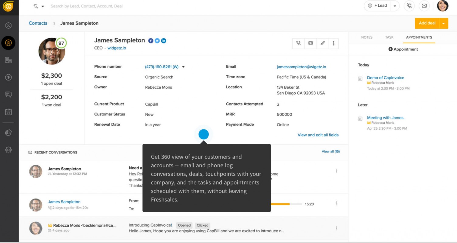 1.  Phần mềm chăm sóc khách hàng miễn phí Freshworks CRM