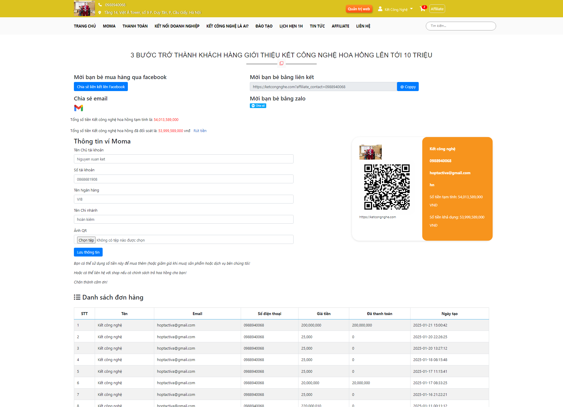 Tổng số tiền Kết công nghệ hoa hồng tạm tính là: là số tiền hoa hồng được lên đơn hàng chưa duyệt đơn hàng thu tiền