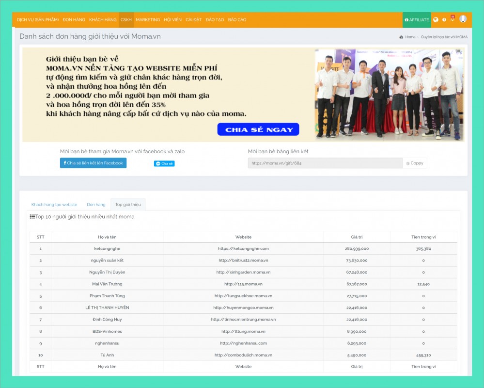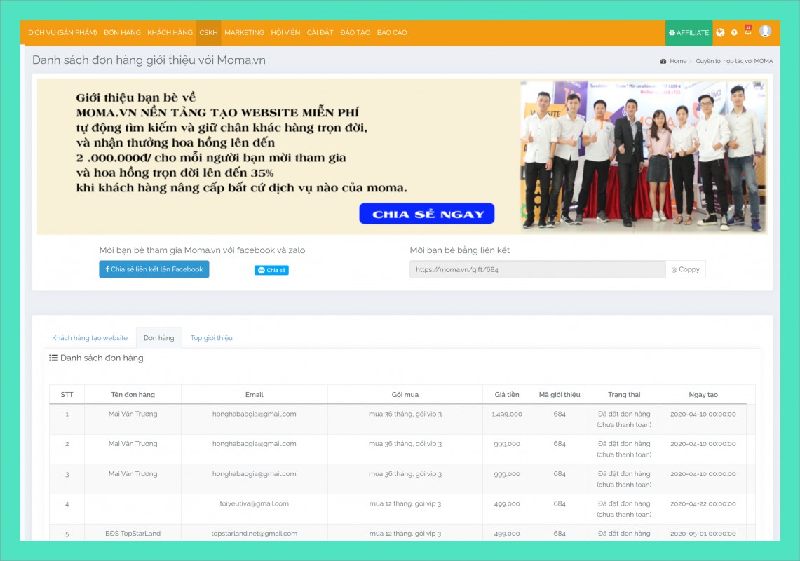 1. TÔI chỉ lấy mã affilaite moma giới thiệu còn gọi điện chăm sóc thì được không: Trả lời  Moma sẵn sàng hỗ trợ về tài nguyên, nguồn lực để bạn giới thiệu thêm nhiều khách hàng thành công!