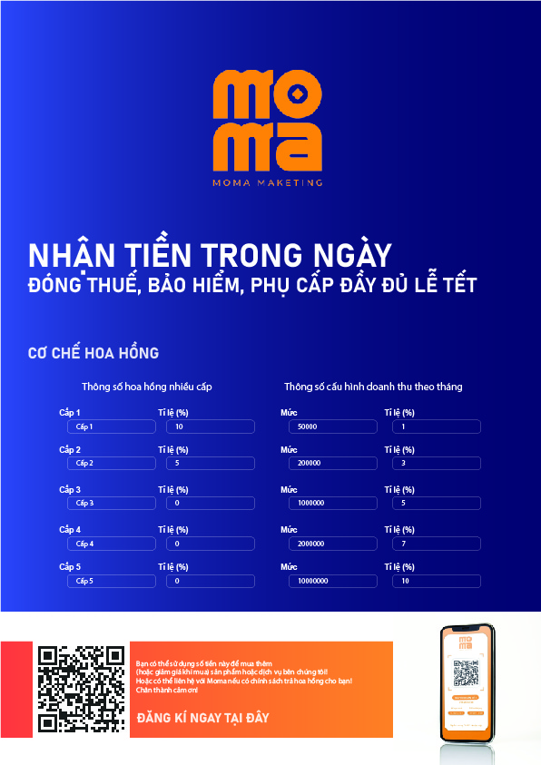 Với niềm tin sản phẩm moma sẽ hoàn lại 100% trong vòng 30 ngày sử dụng nếu khách hàng không hài lòng về sản phẩm, dịch vụ như đã thông báo ở trên. Thiếu tính năng. Giải pháp chưa đúng thì moma sẽ hoàn lại bạn 100% tiền đã thanh toán. Doanh thu cam kết một năm nếu không đạt thì năm thứ hai không mất chi phí phần mềm